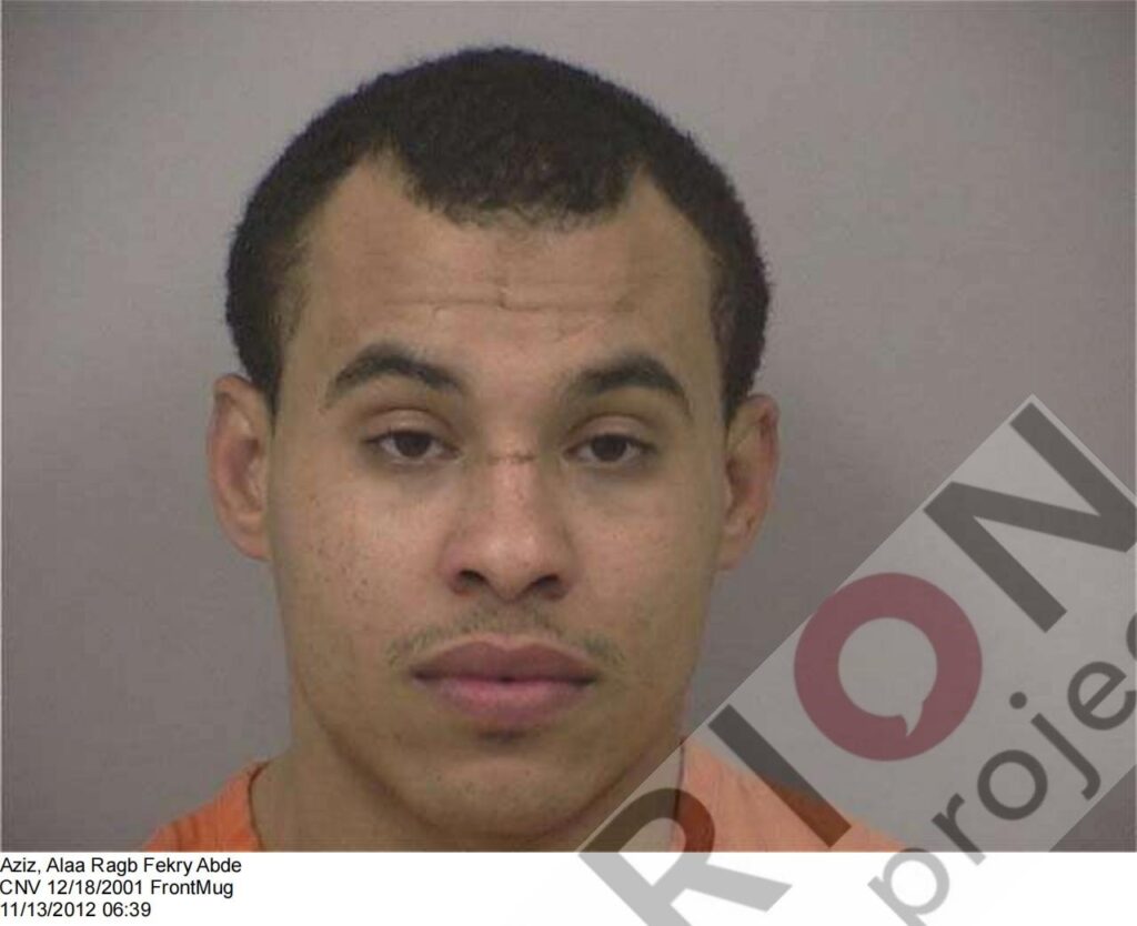 Below is his booking photo: According to the Bureau of Prisons, Alaa Ragb Abdel Aziz was housed at the Federal Correctional Institution Englewood in Littleton, Colorado from July 24, 2002 to April 30, 2003.